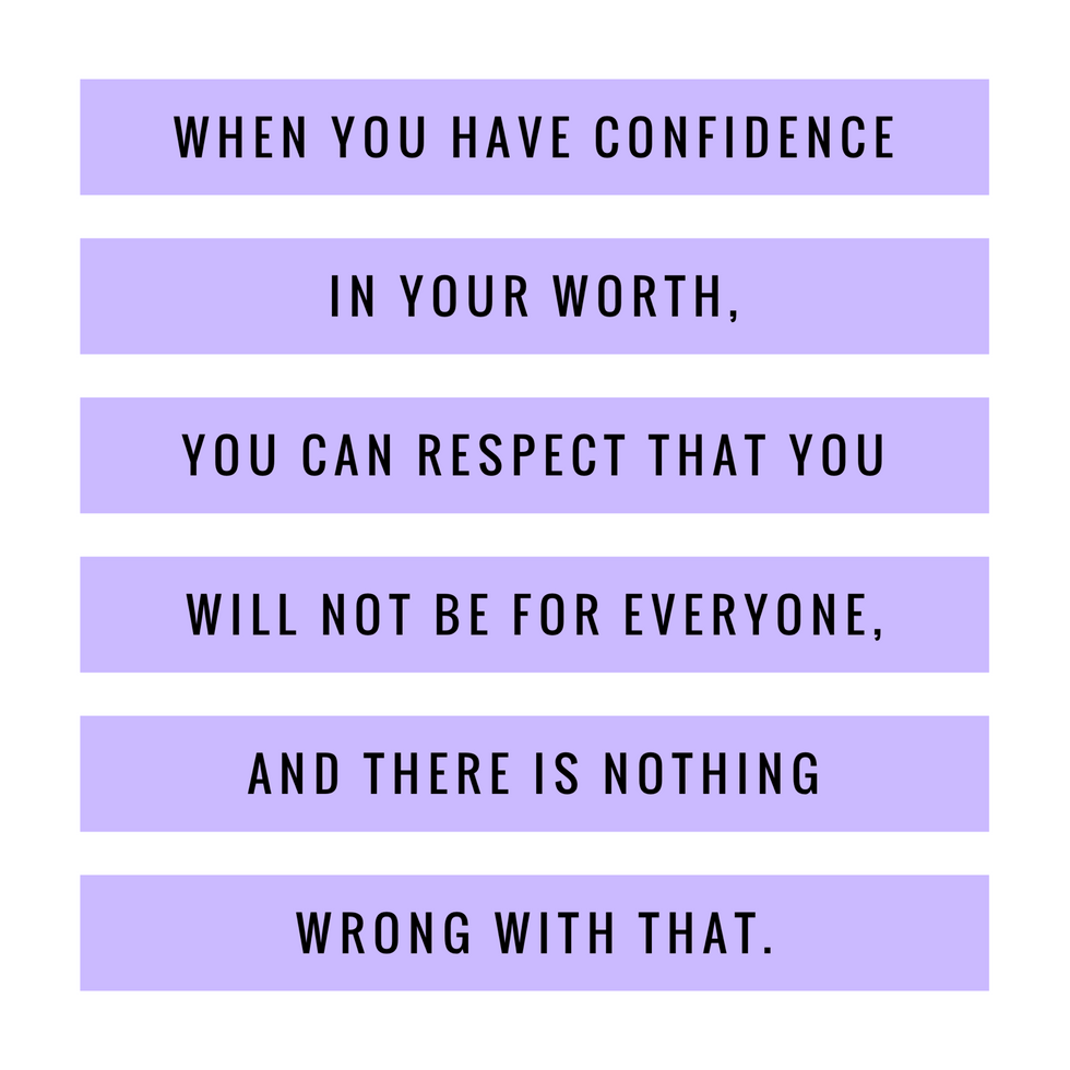 When you have confidence in your worth, you can respect that you will not be for everyone, and there is nothing wrong with that. How often have you raved over a restaurant, song, book or film, only for someone to try it and not have the same reaction or excitement. That doesn't mean you were wrong, or that they were either for not liking it. When I learned to let go of seeking approval, I learned to have the right reasons for liking something or someone that was not tied to validation. I've met and dated great guys that simply weren't the best fit for me. That doesn't speak any less of them, it just means there is someone else that would be a better fit. We are all just puzzle pieces and not fitting everyone’s needs is expected, and does not diminish the need or importance of who you will be for the one that will see you as a perfect puzzle piece.